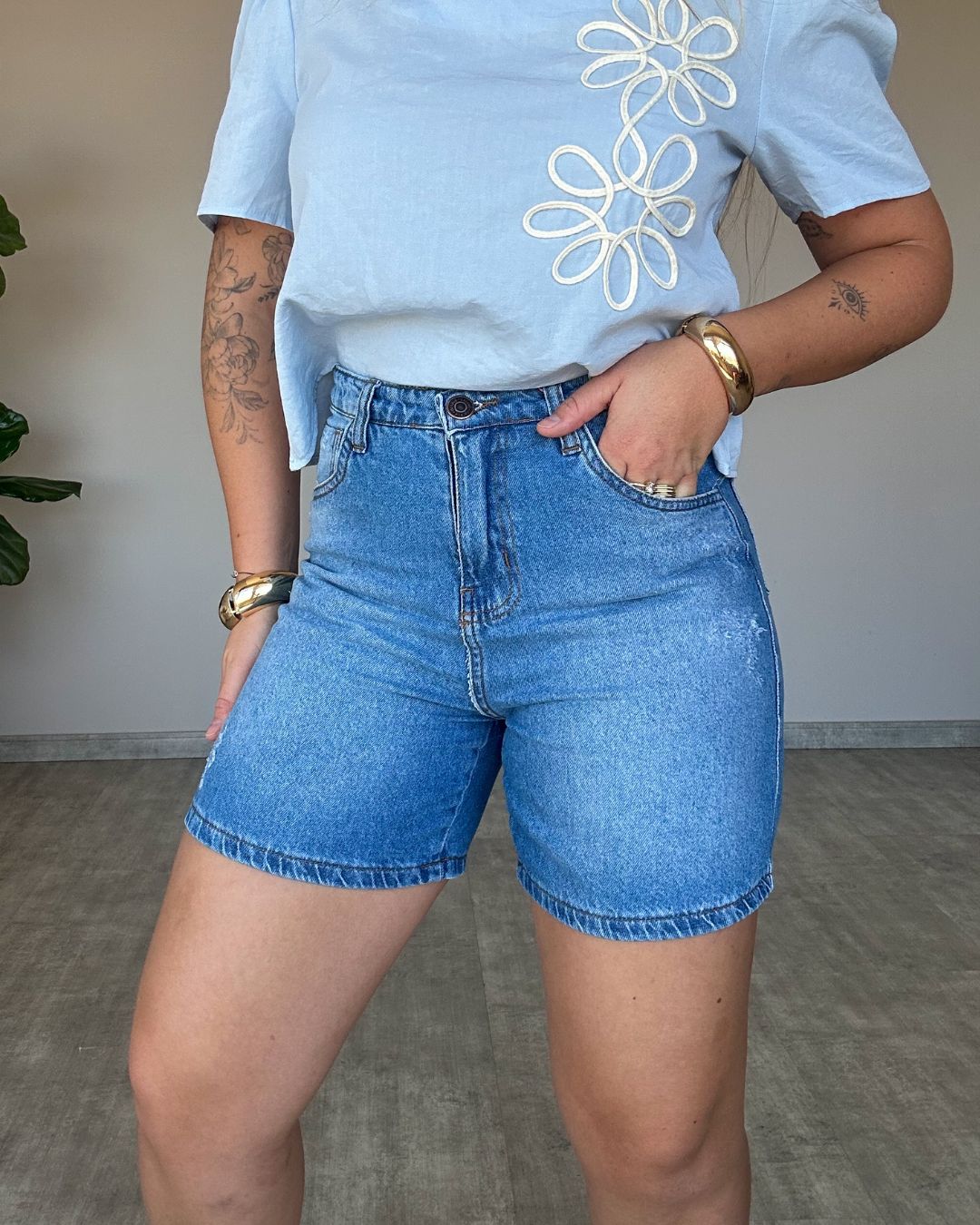 Versátil e confortável, esta bermuda de lavagem média é ideal para looks descontraídos do dia a dia. Com comprimento mais curto, valoriza o visual feminino sem perder o conforto. Confeccionada em jeans macio e resistente, garante ótimo caimento. Conta com bolsos frontais e traseiros, unindo praticidade e estilo para qualquer ocasião.