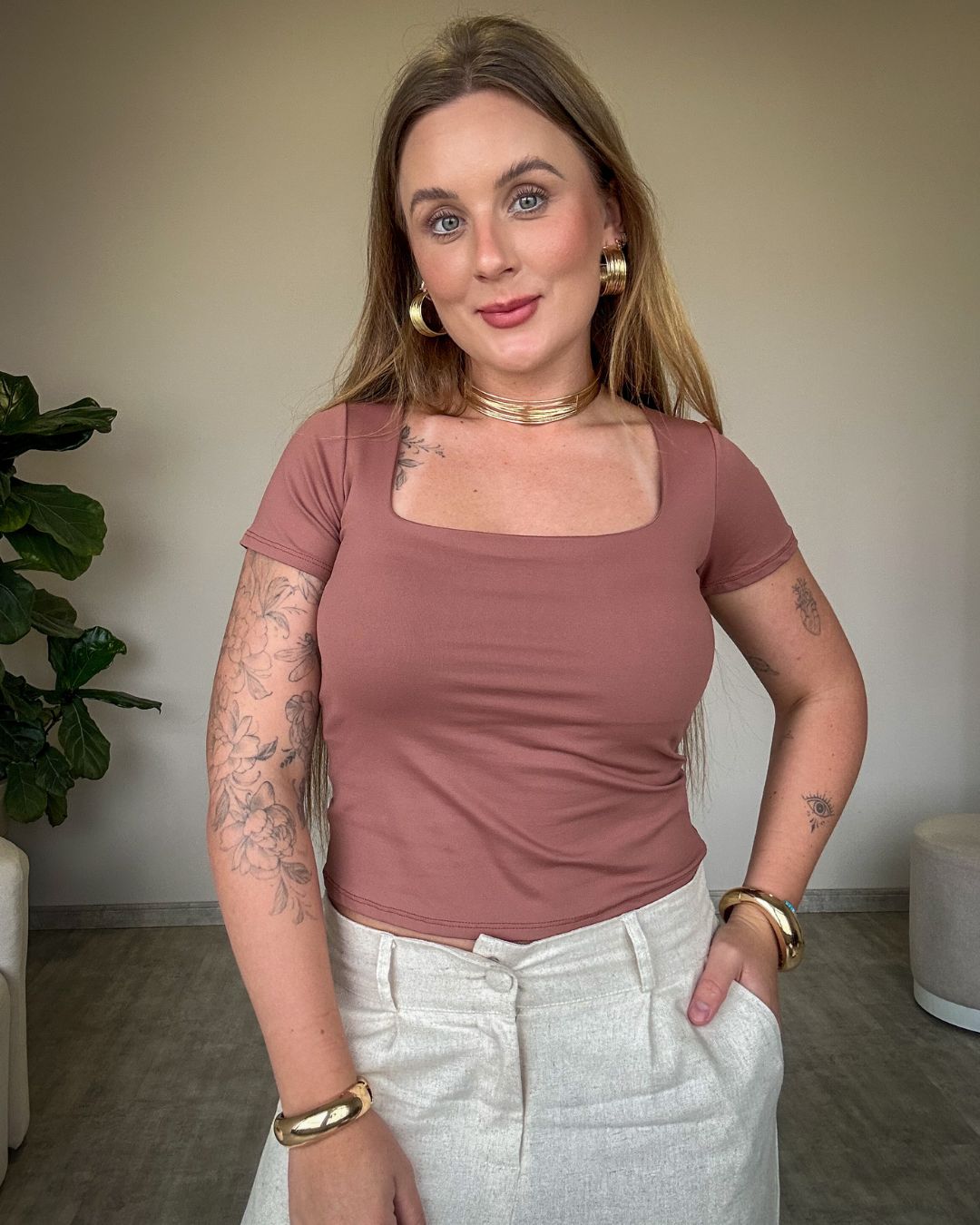 Blusa feminina de poliamida com manguinha curta, perfeita para quem busca conforto, leveza e estilo no dia a dia. Confeccionada em tecido de alta qualidade, a peça oferece toque macio, excelente elasticidade e caimento ajustado ao corpo, valorizando a silhueta sem apertar.