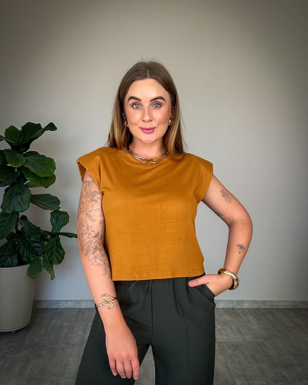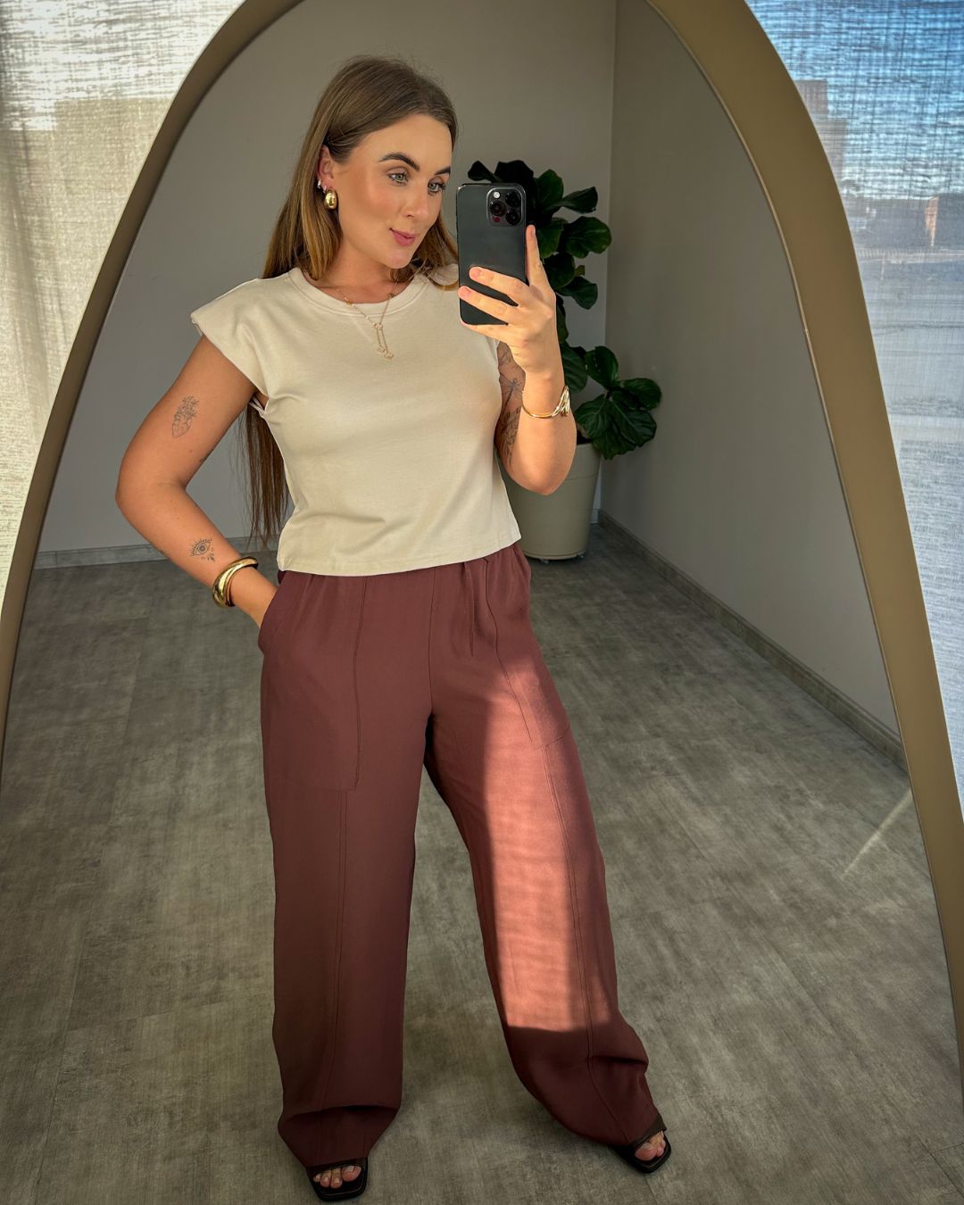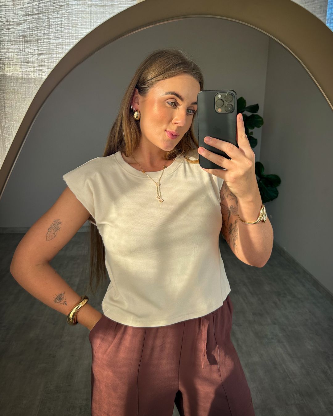 Comprimento cropped discreto, perfeito para usar por dentro ou solto