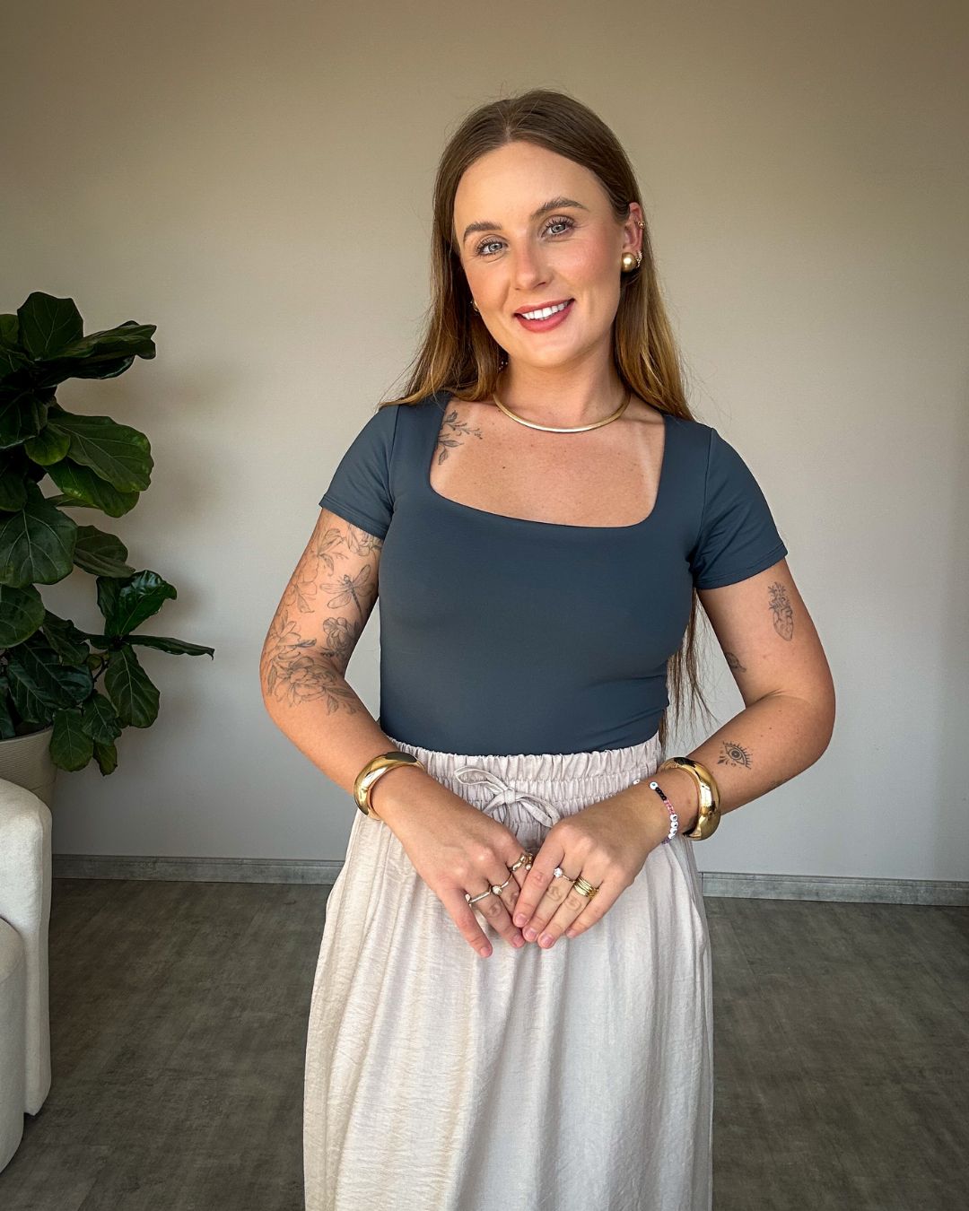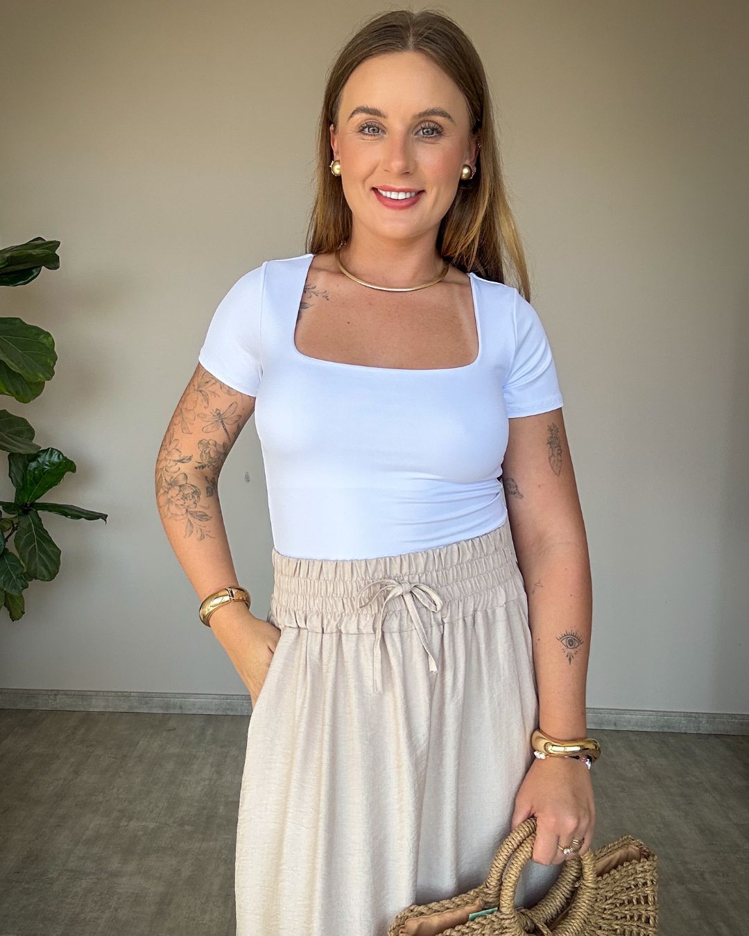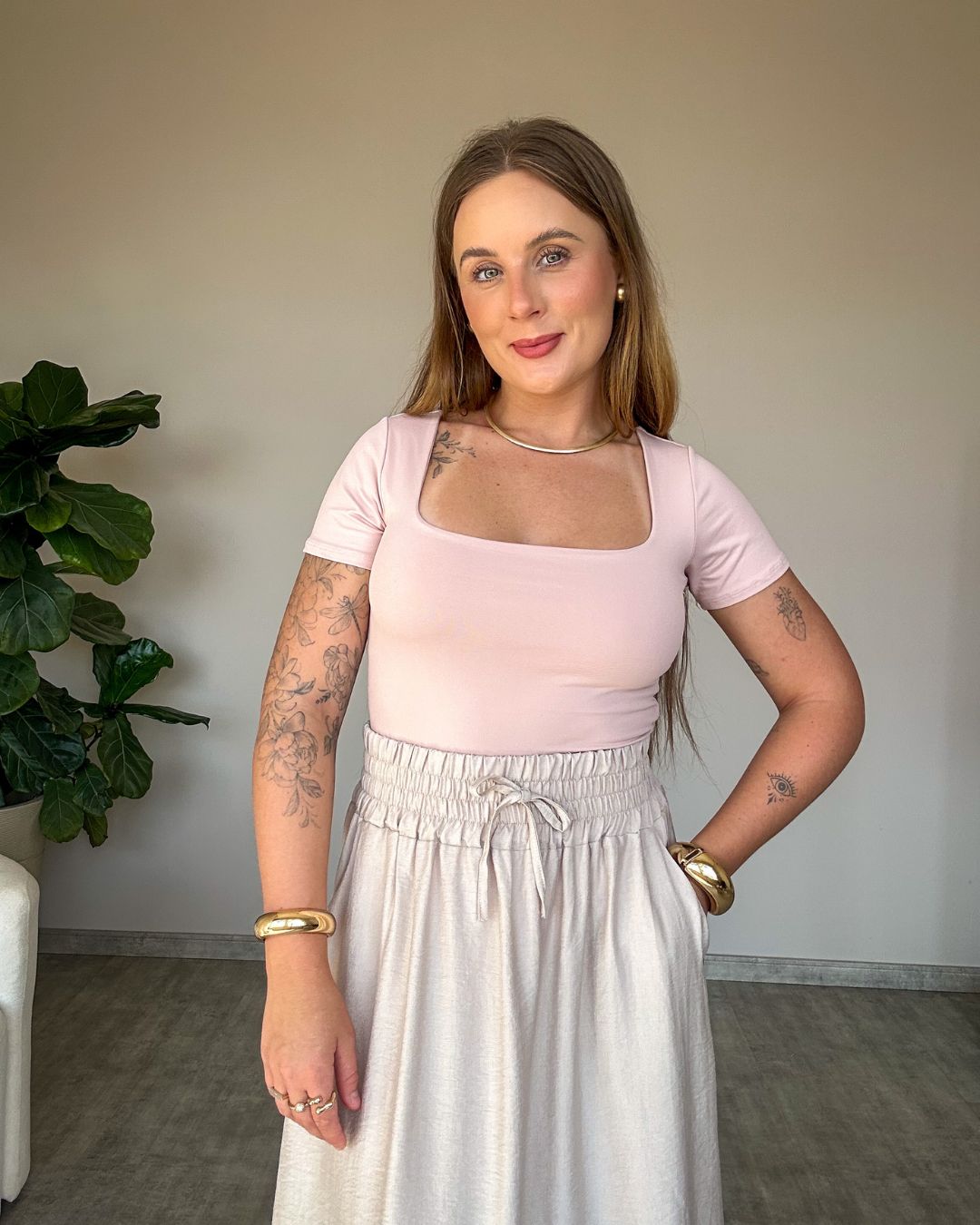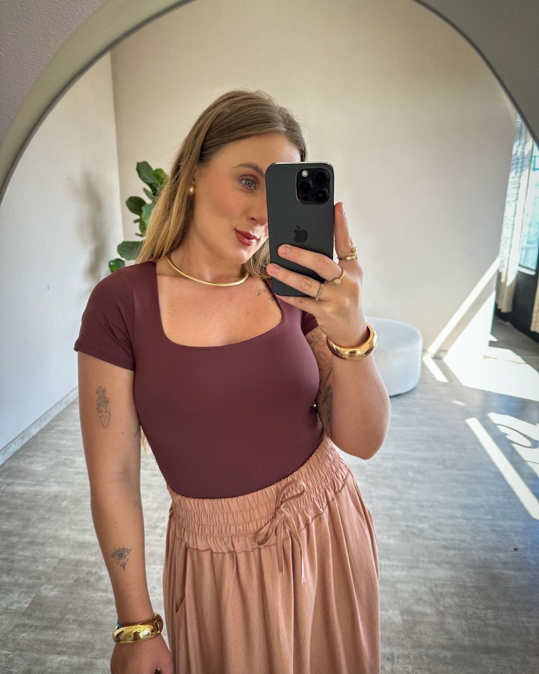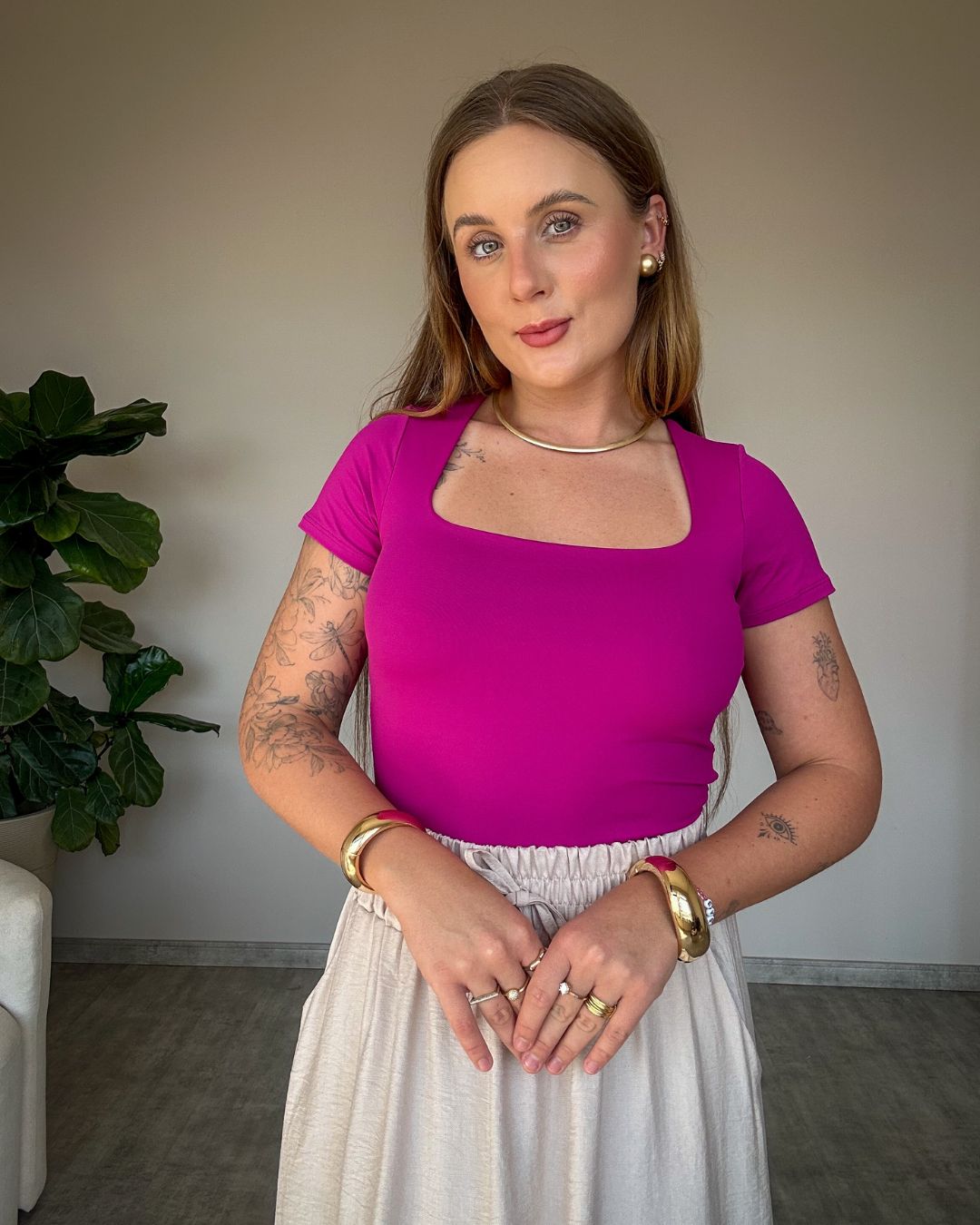 Disponível em duas opções de gola — redonda e quadrada — o body atende diferentes gostos e estilos. A versão com gola redonda traz um visual mais clássico e discreto, ideal para o uso diário ou produções básicas. Já o modelo com gola quadrada valoriza a região do colo e adiciona um toque moderno e elegante ao look, sendo uma ótima escolha para quem prefere um visual mais sofisticado.