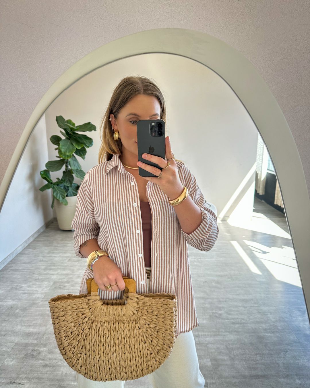 A clássica camisa listrada que nunca sai de moda! Confeccionada em tecido leve e respirável, com toque macio e caimento soltinho, ela é perfeita para compor looks modernos e descomplicados.