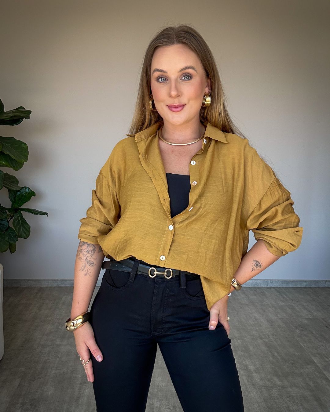 Com design clássico, traz fechamento por botões frontais, mangas longas com punho simples e barra arredondada, que deixa o visual mais moderno e elegante. Pode ser usada de várias formas: fechada para um look sofisticado, parcialmente para dentro da calça ou até aberta como sobreposição.