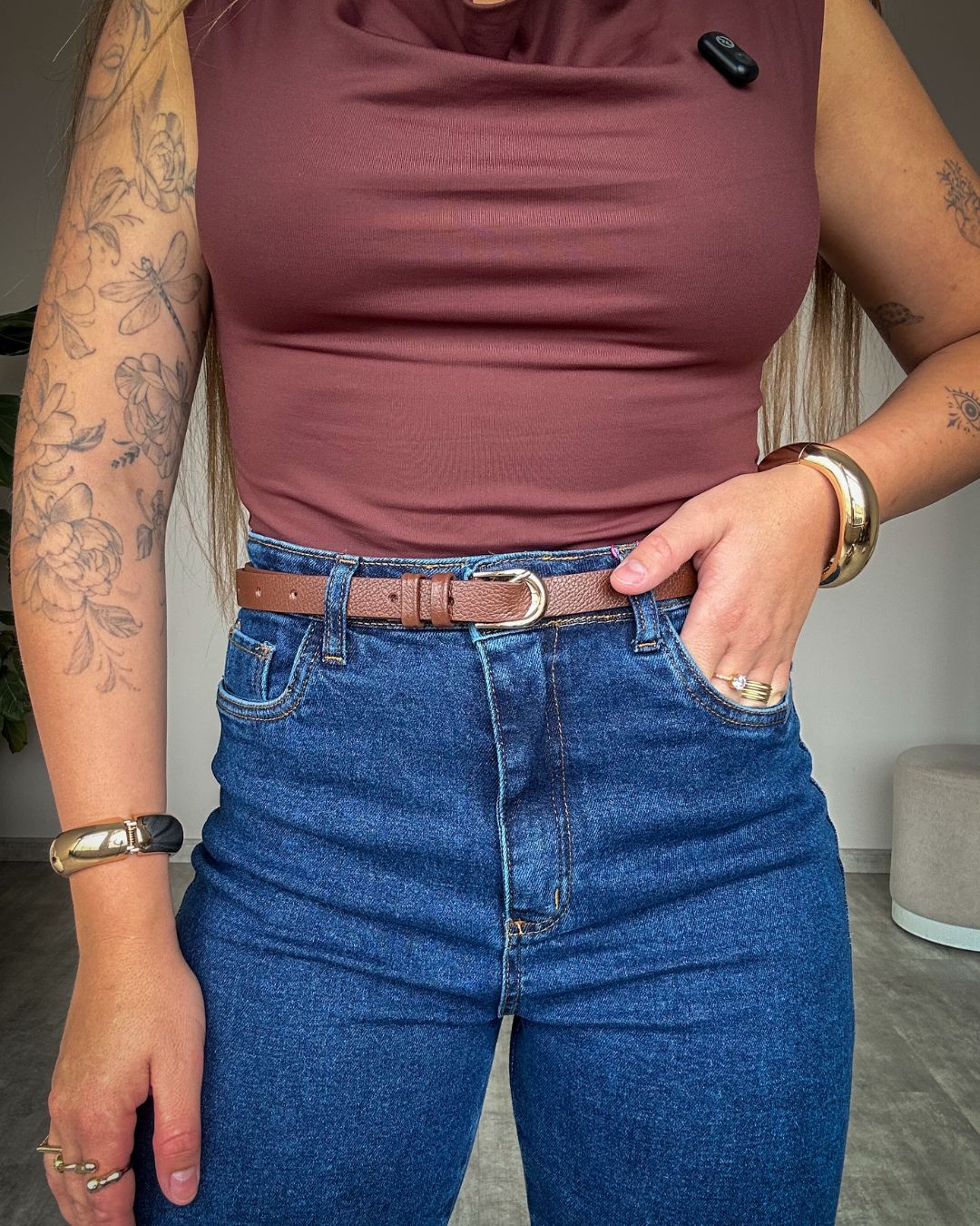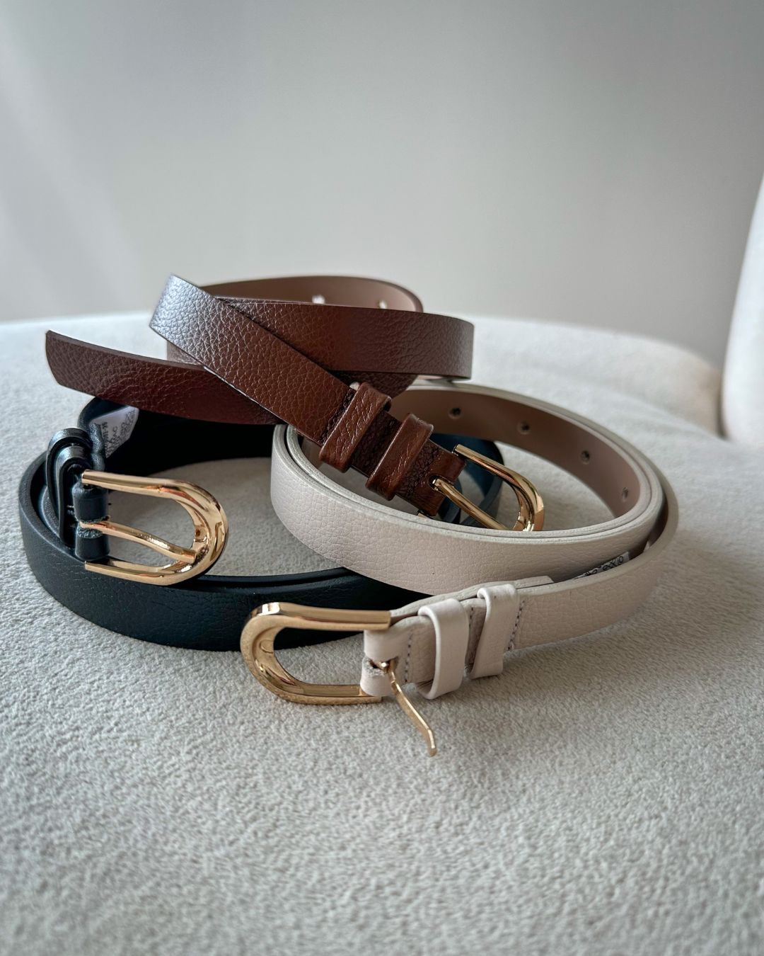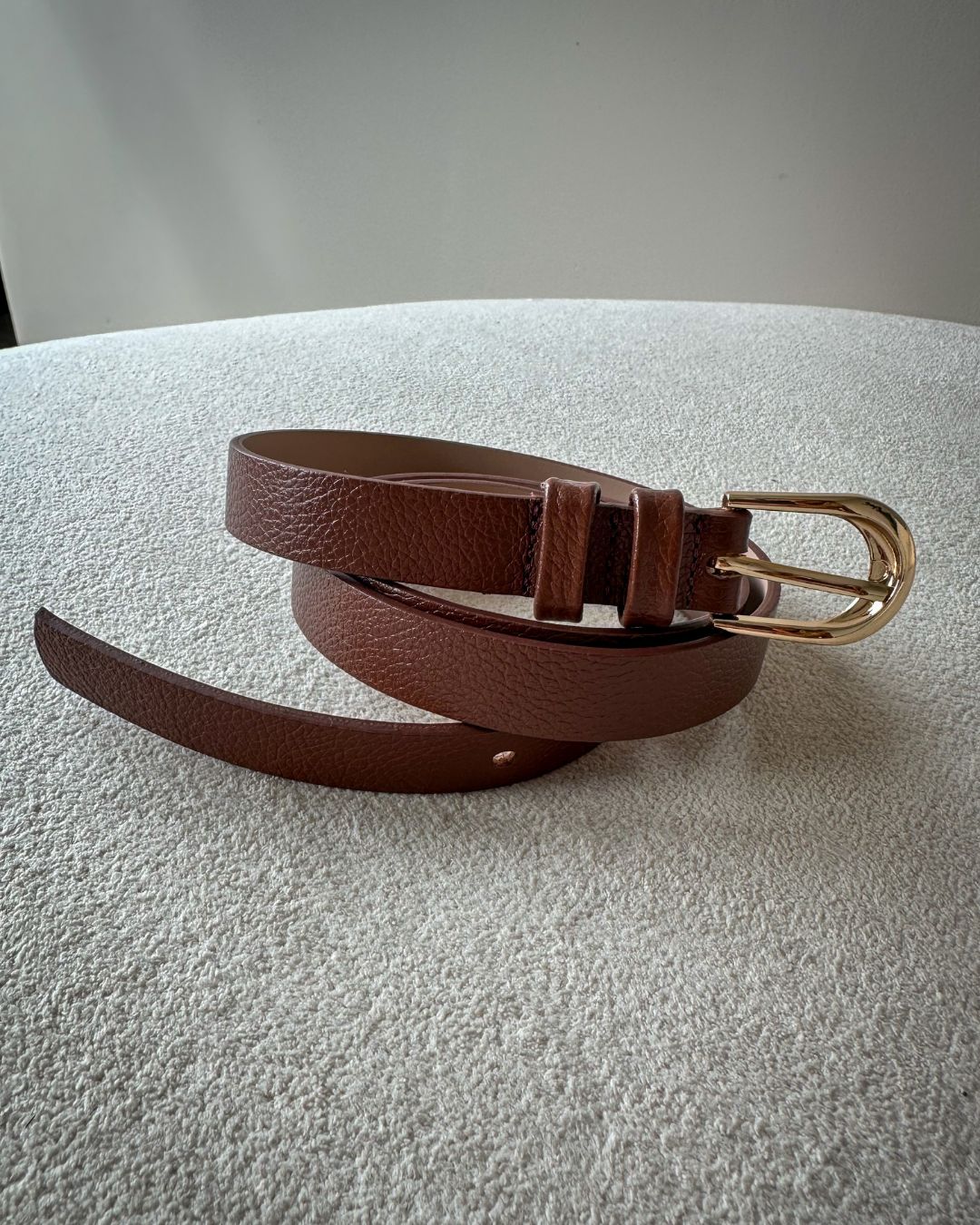Este cinto fino com fivela dourada é o acessório ideal para quem busca sofisticação e versatilidade no dia a dia. Com design minimalista e elegante, ele valoriza a silhueta e adiciona um charme extra a vestidos, saias, calças ou até mesmo blazers.