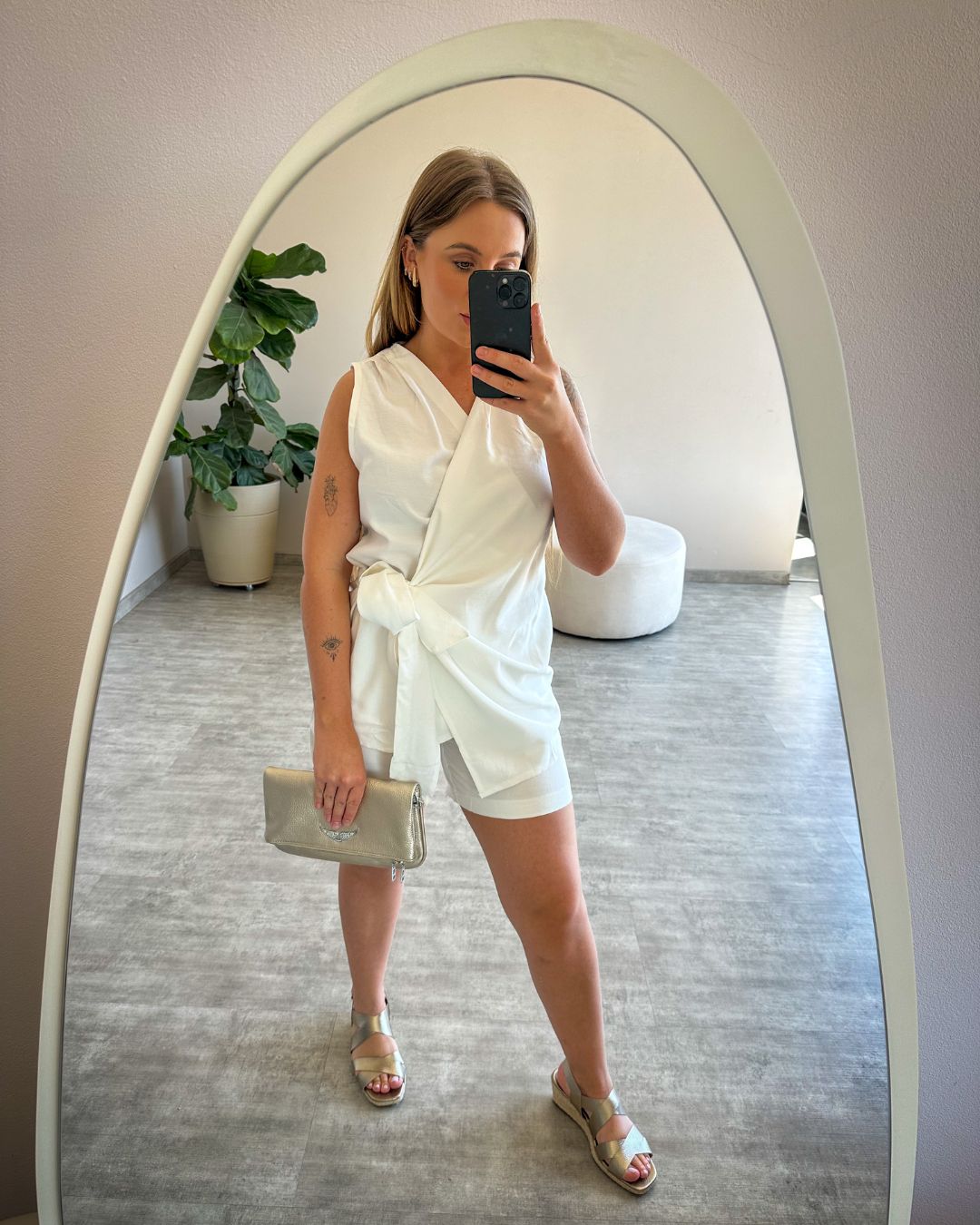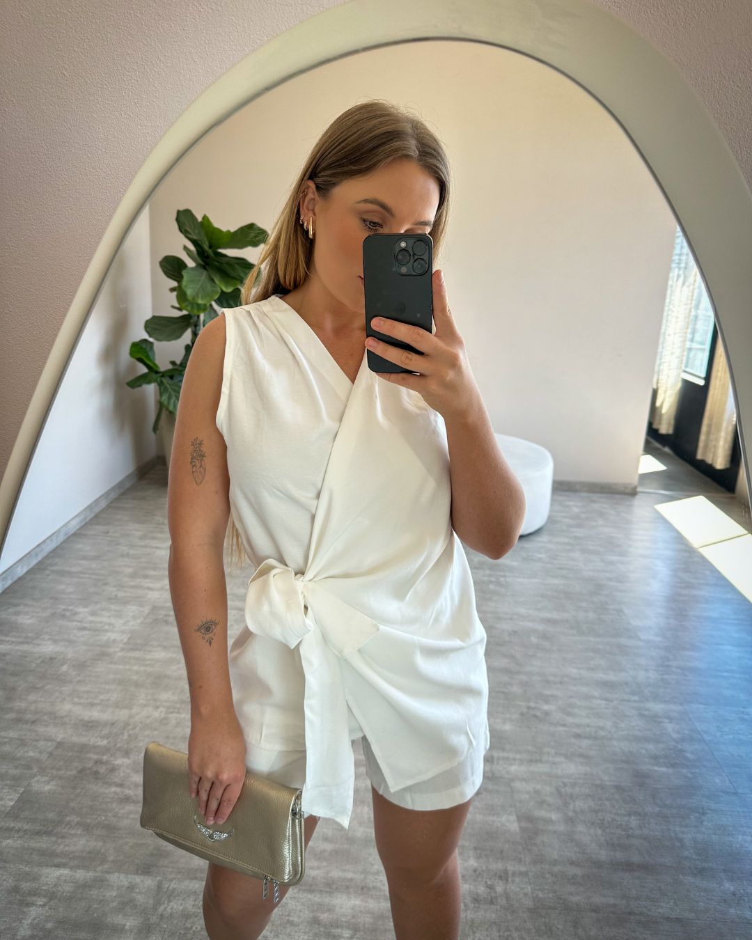 Composto por colete transpassado e short de corte impecável, ele é a escolha ideal para quem ama um visual moderno, leve e refinado — perfeito para o trabalho, ocasiões especiais ou aquele passeio com estilo.