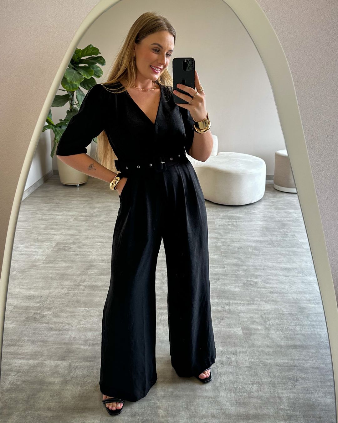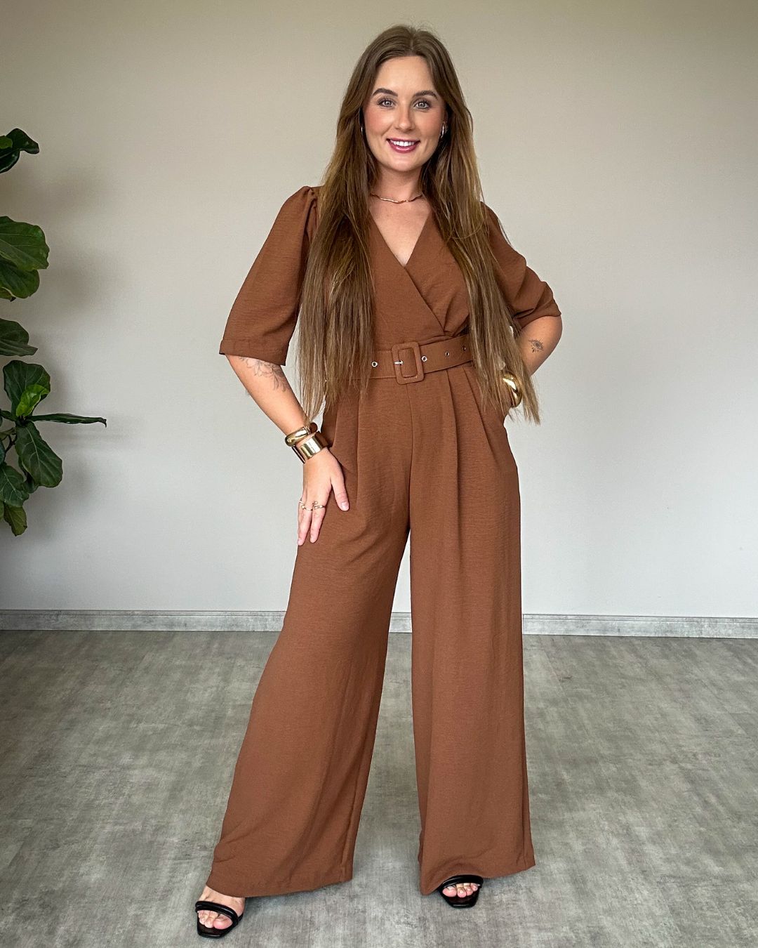 Além disso, o macacão conta com bolsos funcionais, detalhe que une estilo e praticidade no dia a dia. Ideal para diversas ocasiões – desde eventos formais e reuniões importantes até jantares especiais – ele é a peça curinga que não pode faltar no seu guarda-roupa.
