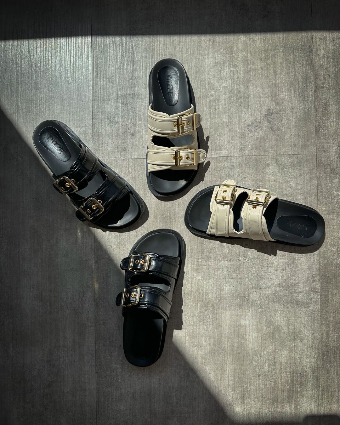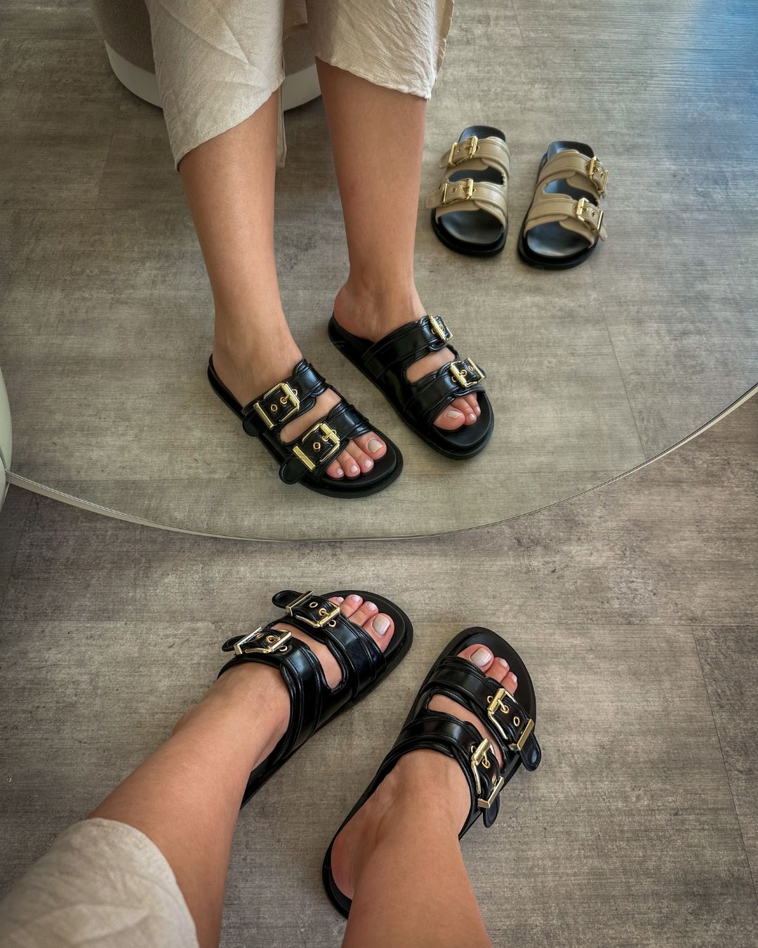 O modelo conta com duas fivelas ajustáveis no peito do pé, que além de darem um charme extra ao visual, permitem um encaixe perfeito e personalizado. Seu design minimalista e elegante facilita as combinações, sendo ideal para compor desde looks casuais até produções mais fashionistas.