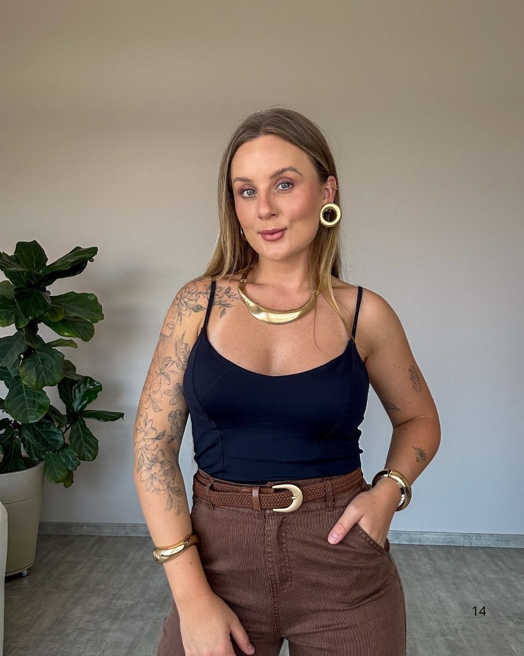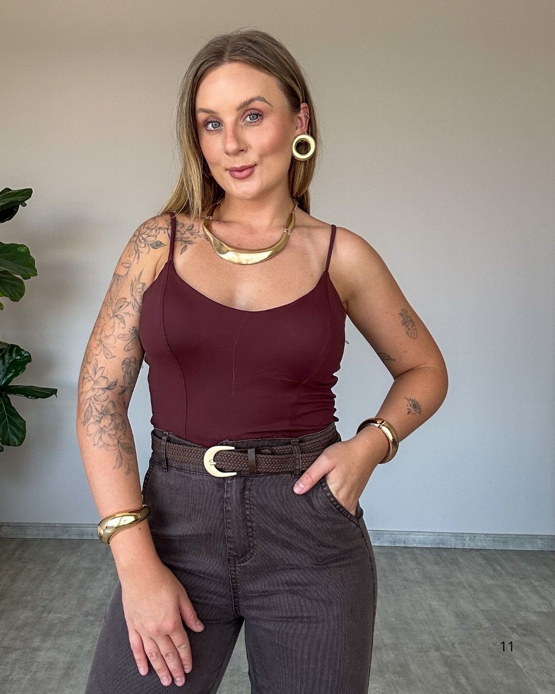 Com alcinhas finas e modelagem ajustada, a regata valoriza o corpo de forma natural e elegante, sendo uma ótima opção tanto para o uso casual quanto para composições mais arrumadas.