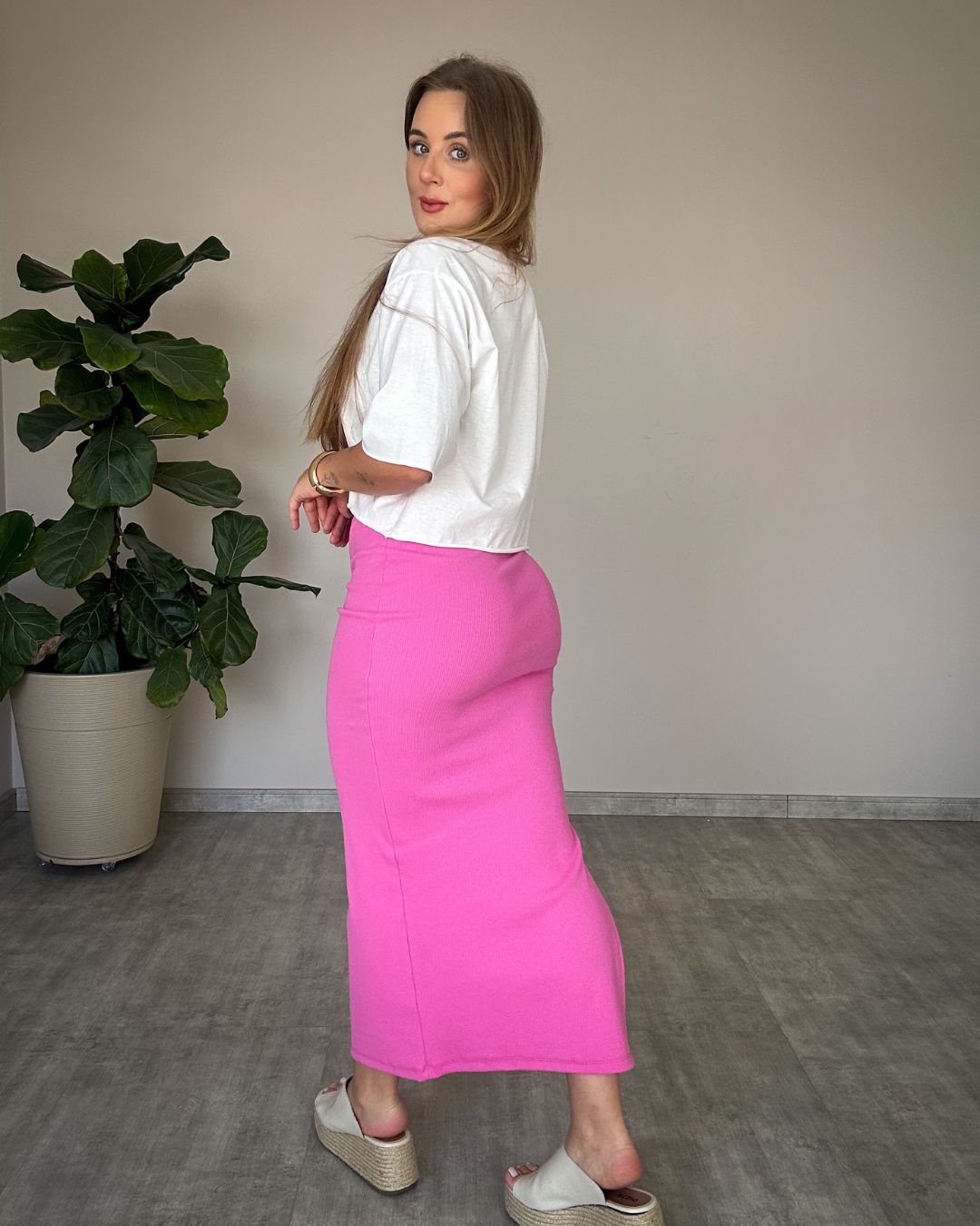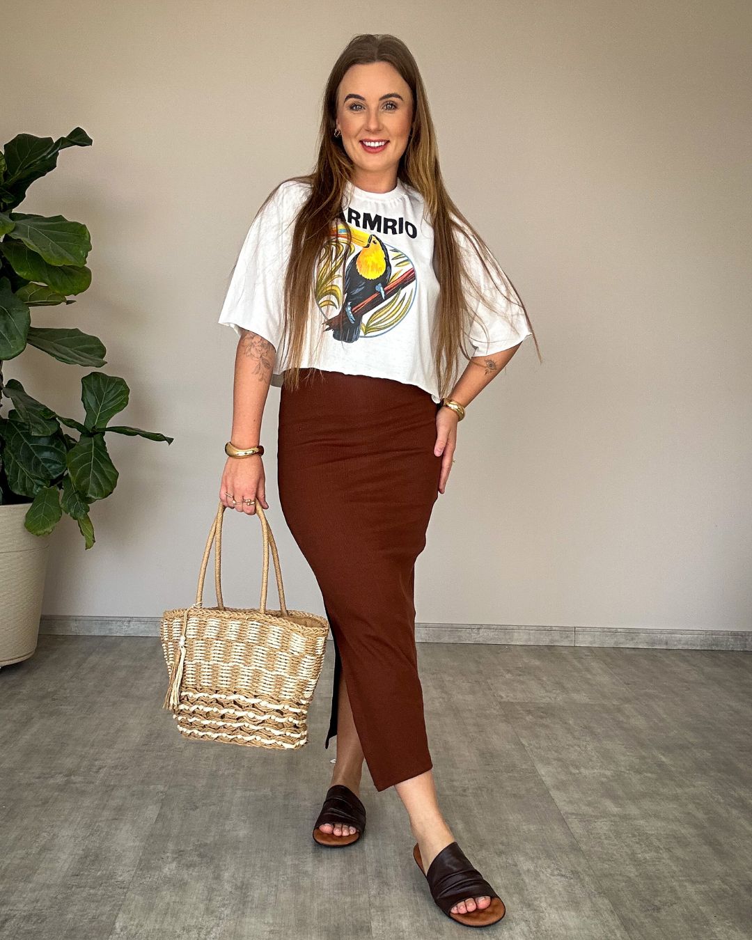 Conforto e estilo em uma única peça. A saia midi canelada é perfeita para compor looks modernos e descomplicados. Seu tecido com textura canelada oferece um caimento ajustado e confortável, valorizando a silhueta sem abrir mão da praticidade.