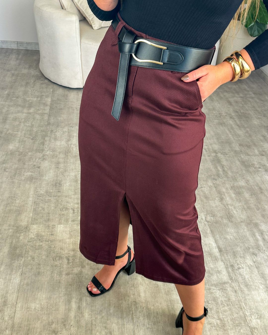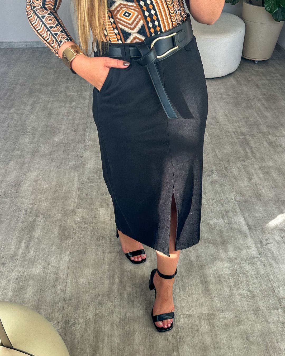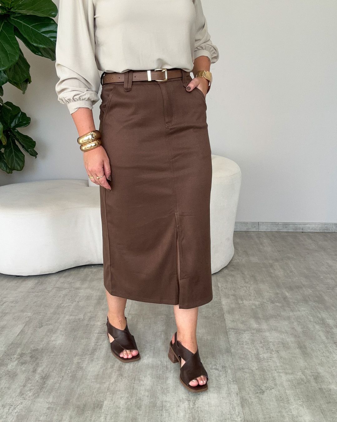Essa saia mídi é aquela peça que transforma qualquer look em segundos!