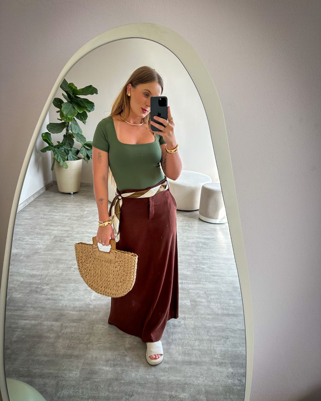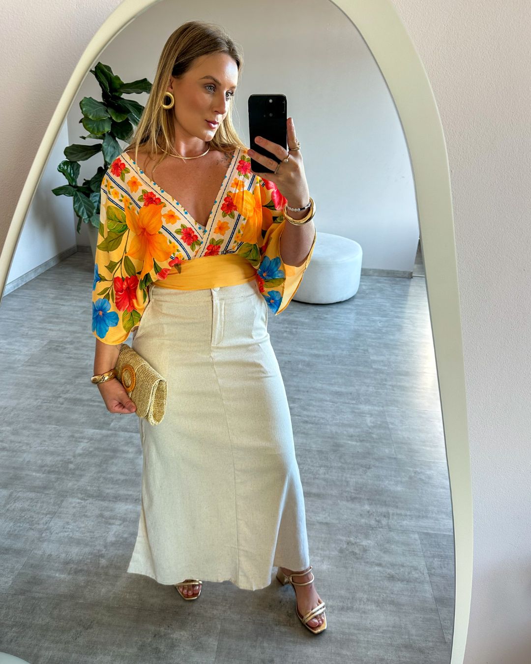 A saia midi de linho é uma peça versátil e elegante, ideal para compor looks frescos e sofisticados em qualquer ocasião. Com comprimento midi e caimento leve, ela proporciona conforto sem abrir mão do estilo.