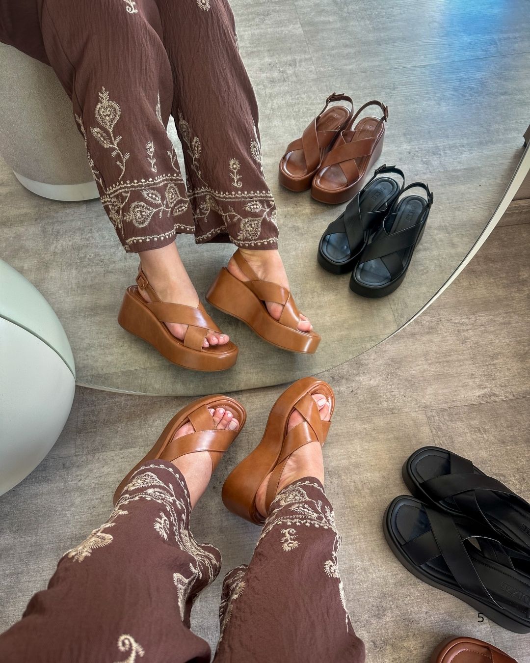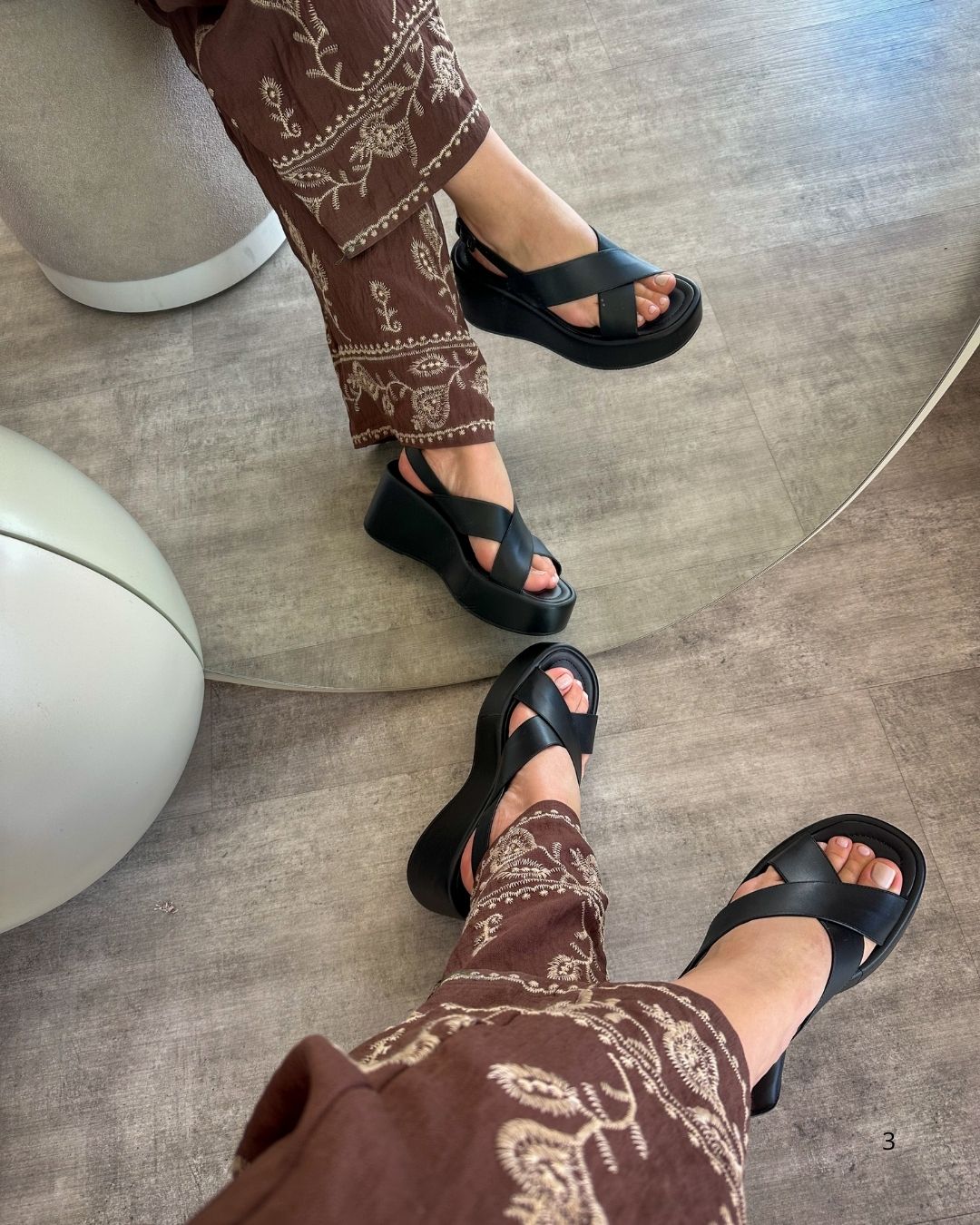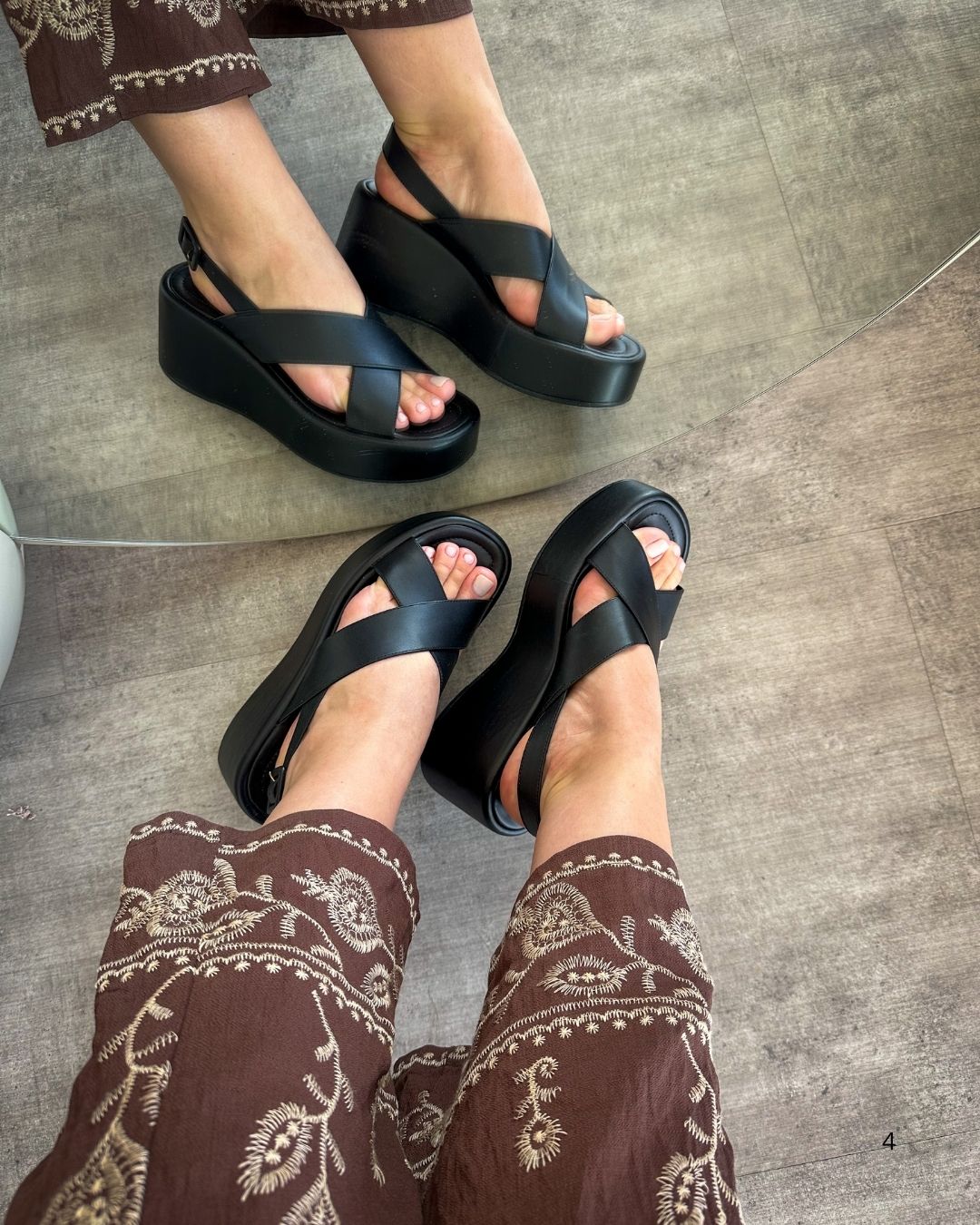 A plataforma leve e estável oferece altura na medida certa, proporcionando muito conforto ao caminhar. Já a palmilha macia e o acabamento impecável tornam cada passo mais agradável — ideal para acompanhar sua rotina do dia a dia ou compor produções charmosas em eventos e passeios.