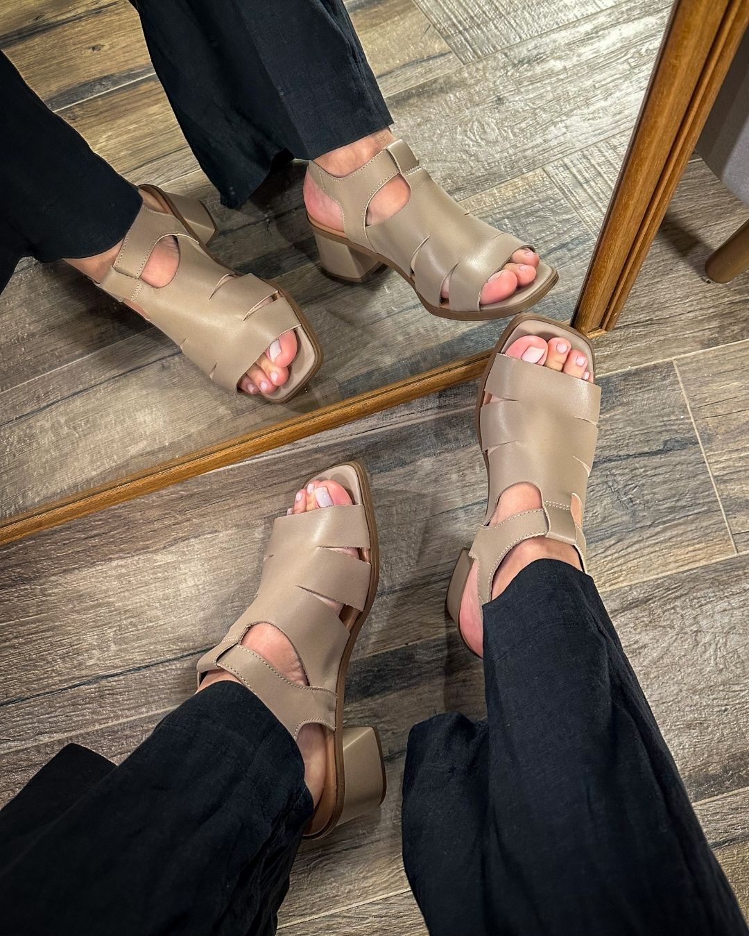 O fechamento em velcro proporciona praticidade no calce e melhor ajuste, enquanto o salto bloco oferece estabilidade, sendo ideal tanto para o dia a dia quanto para ocasiões especiais. Seu design moderno com recortes traz charme e sofisticação, combinando facilmente com diferentes produções.